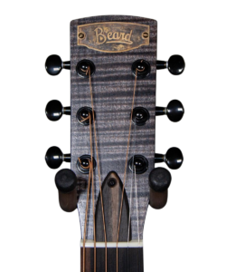 Made of solid mahogany, it has an ebony fretboard, custom curly maple slotted diamond inlays, and a curly maple peghead veneer. A soft c shaped neck makes this guitar incredibly playable all the way up the neck. Lastly, it contains a double action truss rod, an ebony truss rod cover, and a weathered Beard brass badge.